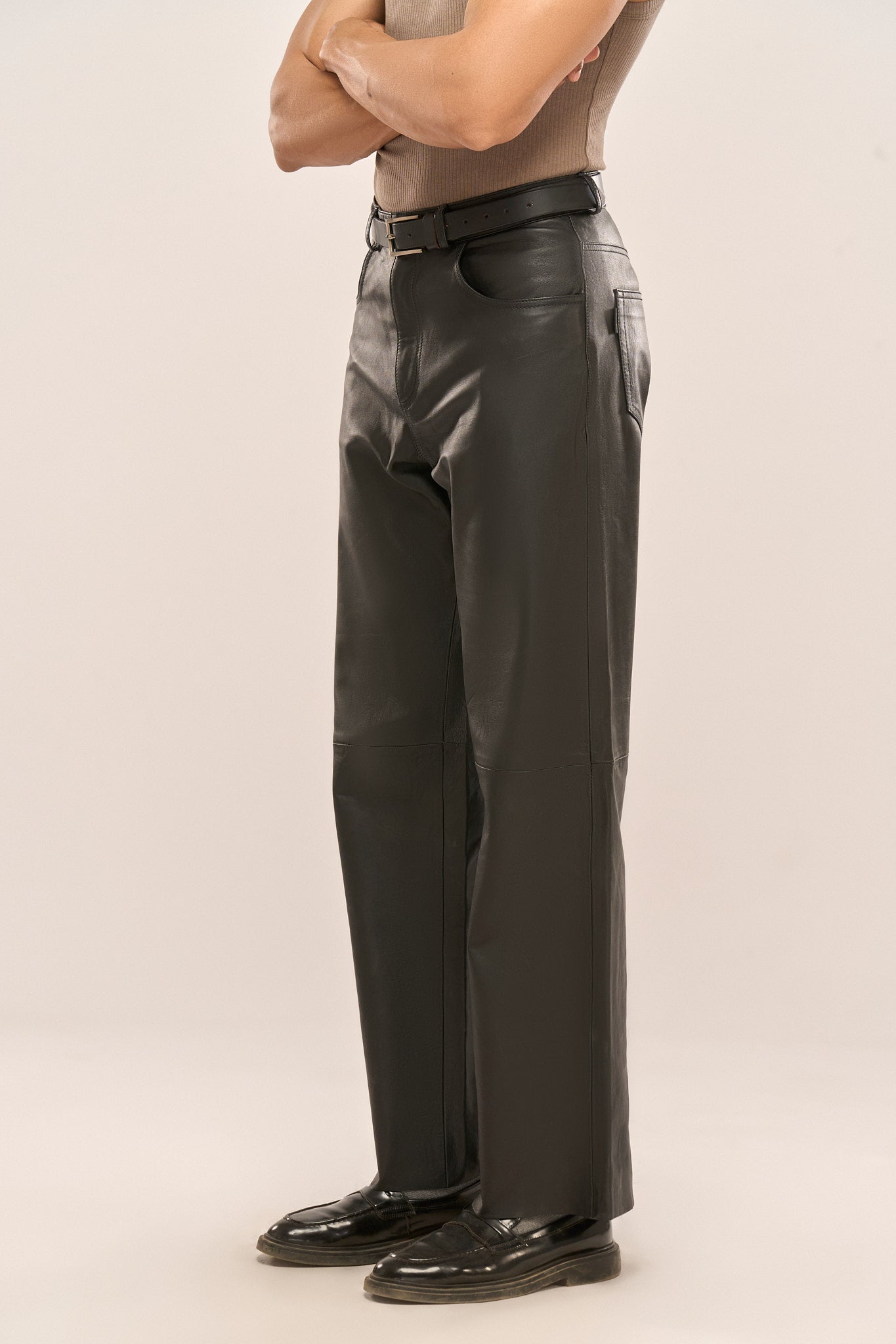 Crafted from premium goat Nappa leather, these straight-fit men's leather trousers offer a buttery-soft feel and luxurious finish.