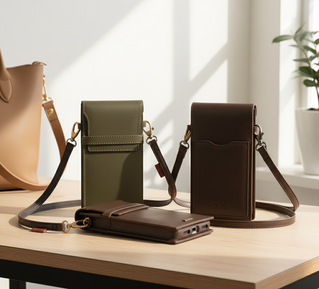 The Phone Pouch is a compact, hands-free essential crafted for everyday convenience. Blending minimalist style with functional ease, it keeps your phone secure and accessible on the go.