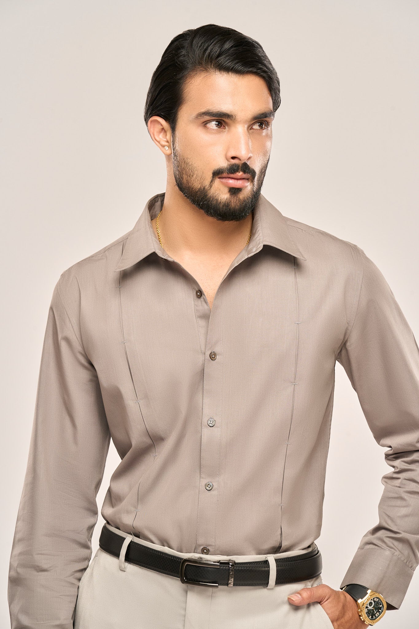 Crafted from 100% cotton poplin, this shirt offers a smooth, breathable feel. Fine pleats and precision stitching make it a refined choice for the gentleman who values sophistication.