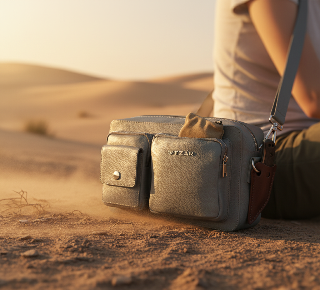 - TZÁR metal logo on flap for a subtle, sophisticated accent