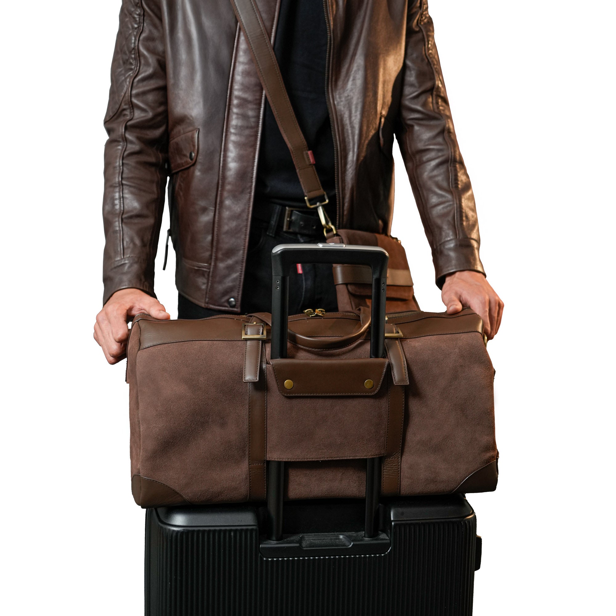 The Trailblazer travel duffle bag is built for bold journeys, crafted from rugged suede with cow leather accents.